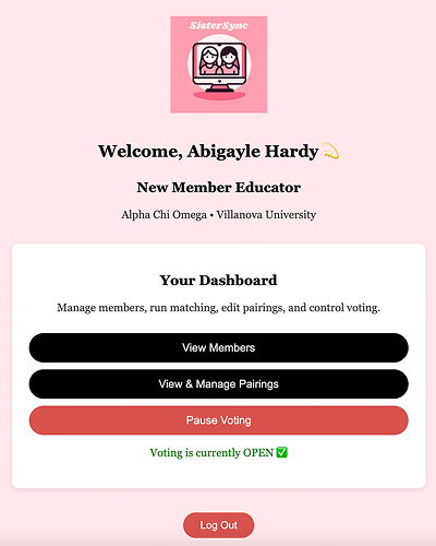 Web Application that allows sorority New Member Educators to create Big/Little pairings without the manual stress.